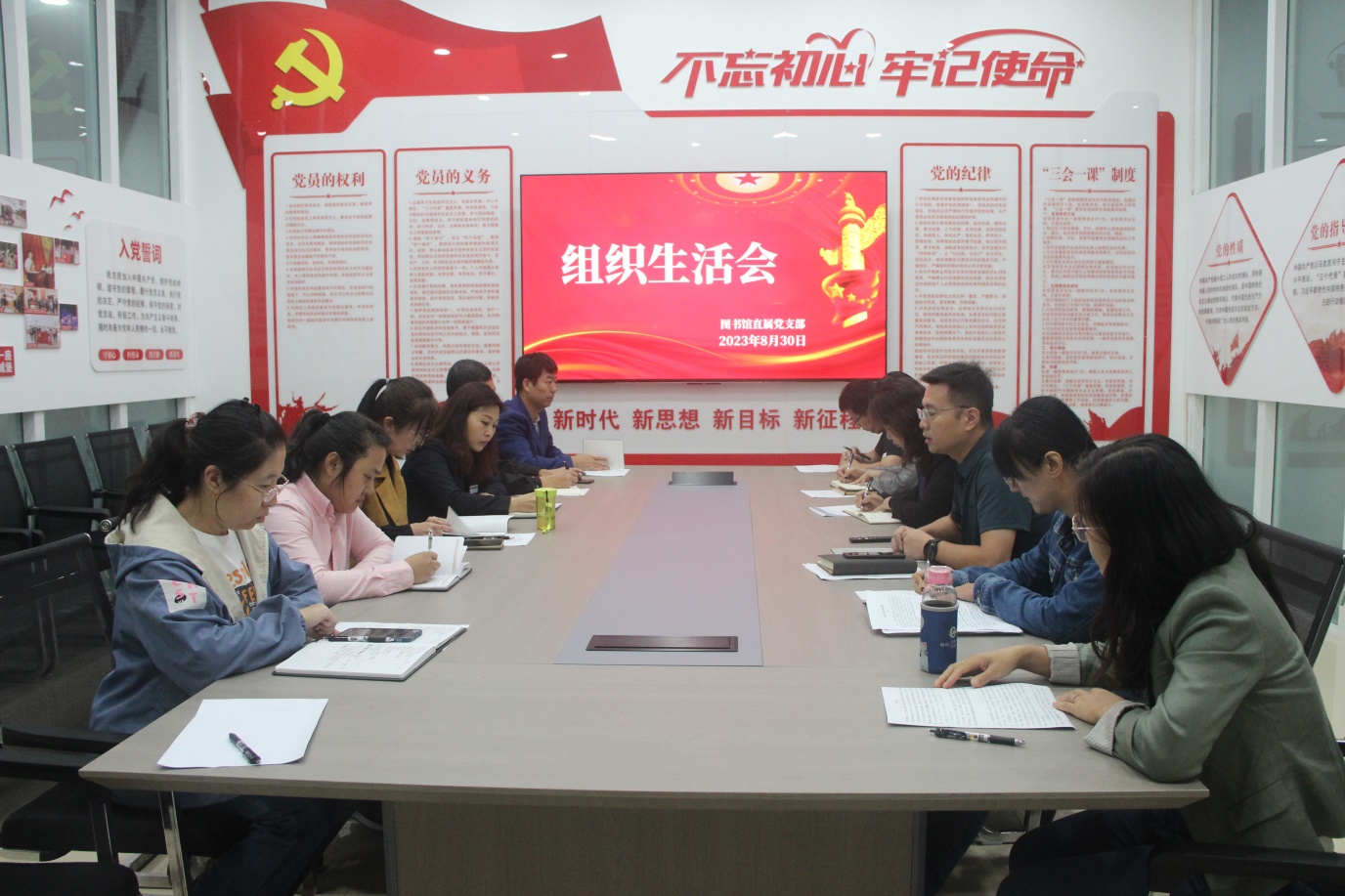 2023年8月30日上午,根据学校党委要求,图书馆直属党支部在党员之家召开了学习贯彻习近平新时代中国特色社会主义思想专题组织生活会。会议由党支部书记、副馆长张红岩主持,党支部全体党员参加会议。