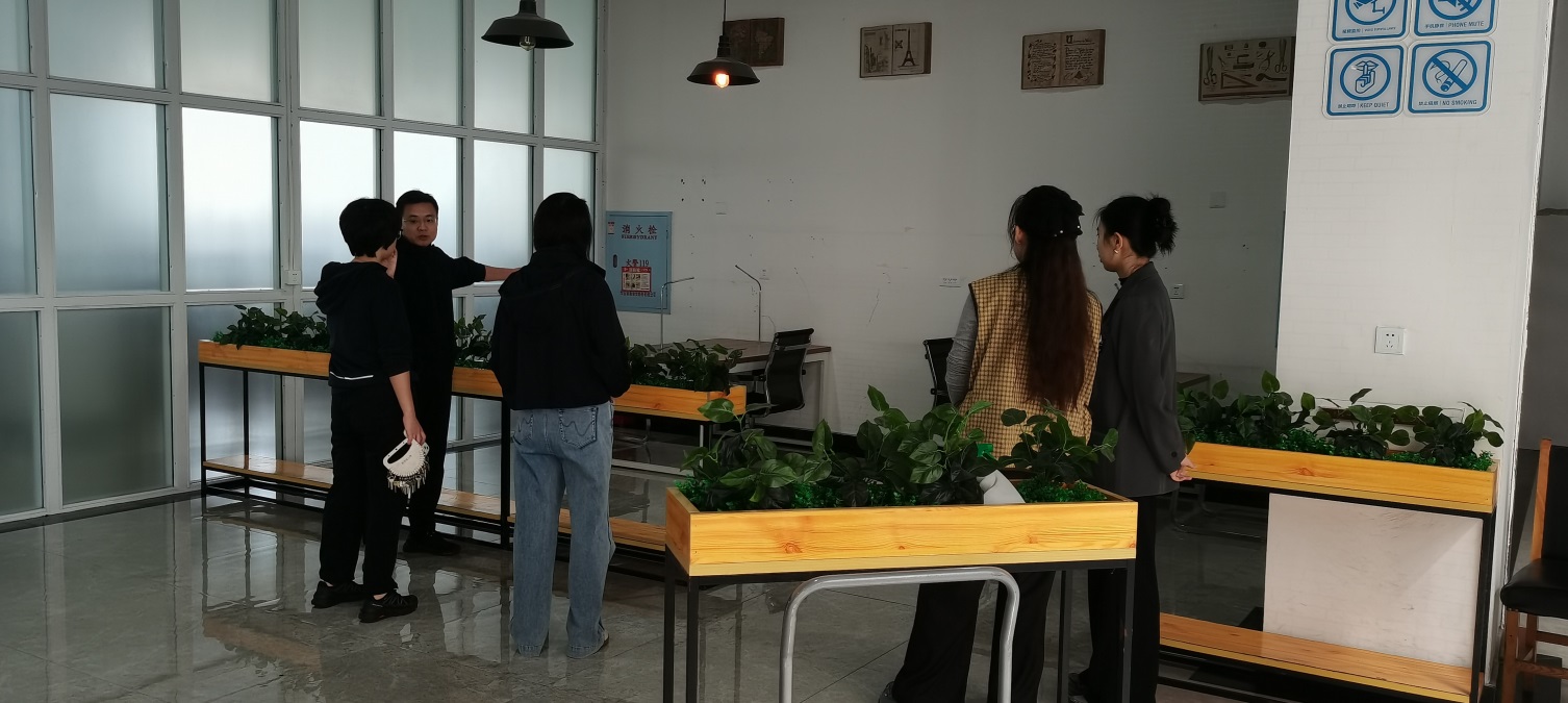 在两位馆长和馆员们的集思广益下决定在二楼总服务台附近开辟出一个视障阅览专属空间。大家一起动手摆放了桌椅和装饰隔断,后续还将对该区域进行粉刷、安装有声书墙,配备电脑、专用打印机和阅读辅助设备,旨在为华天御同学营造一个温馨、无障碍的学习空间,提供更加便捷、舒适的阅读服务,搭建一座连接知识与心灵的桥梁。