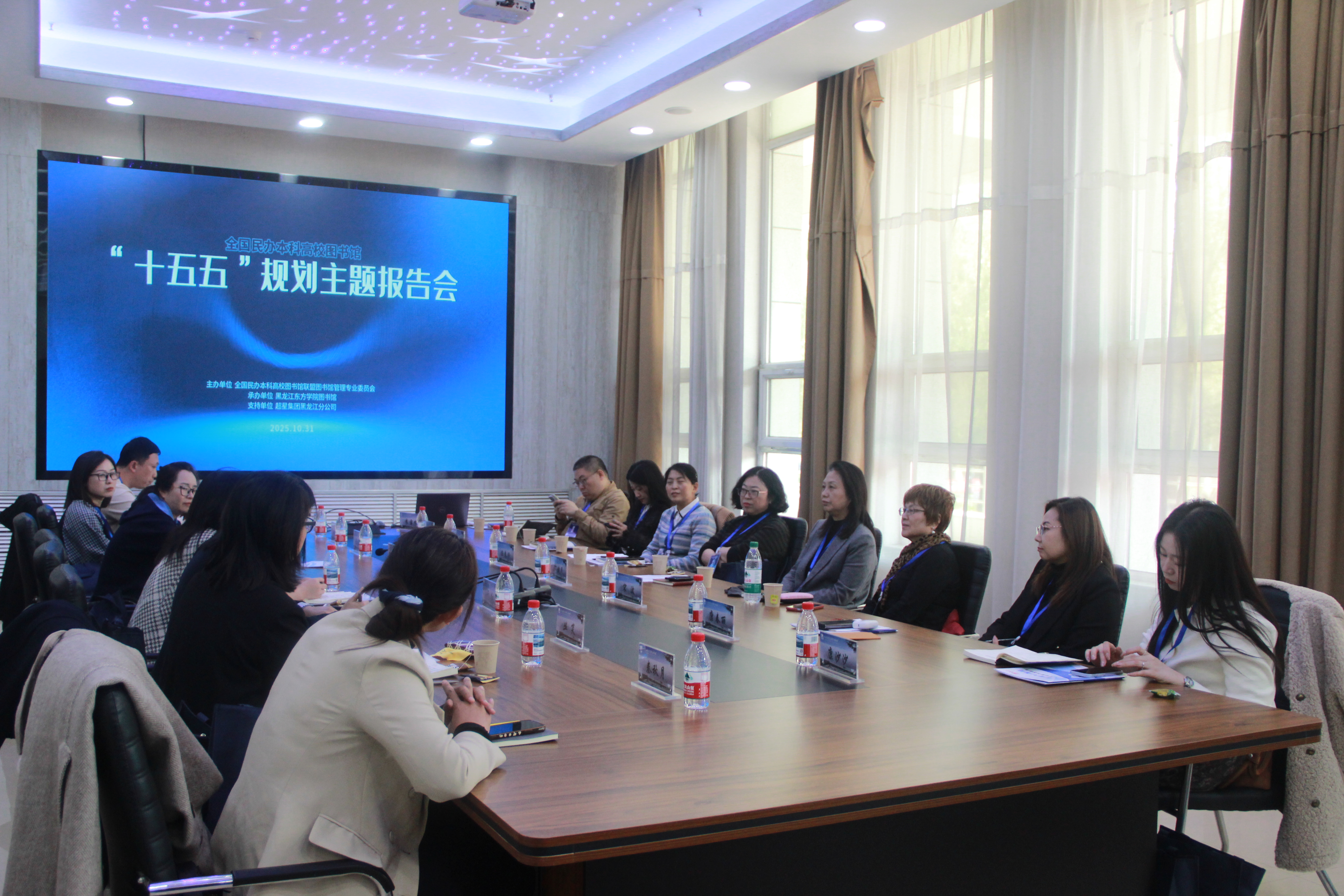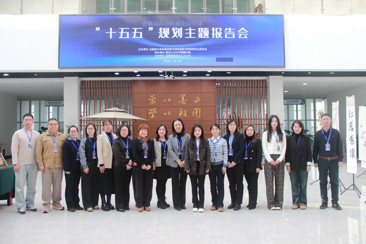 为科学谋划全国民办本科高校图书馆事业未来五年的发展蓝图,10月31日,由全国民办本科高校图书馆联盟图书馆管理专业委员会主办,黑龙江东方学院图书馆承办的全国民办本科高校图书馆“十五五”规划主题报告会胜利召开。全国共计80所民办高校本科图书馆馆长、副馆长参会。会议由联盟副理事长、联盟图书馆管理专业委员会主任、黑龙江东方学院图书馆馆长郭健民主持。其中,黑龙江省各民办高校图书馆馆长、书记、副馆长、办公室主任等20余人在主会场黑龙江东方学院图书馆参会。