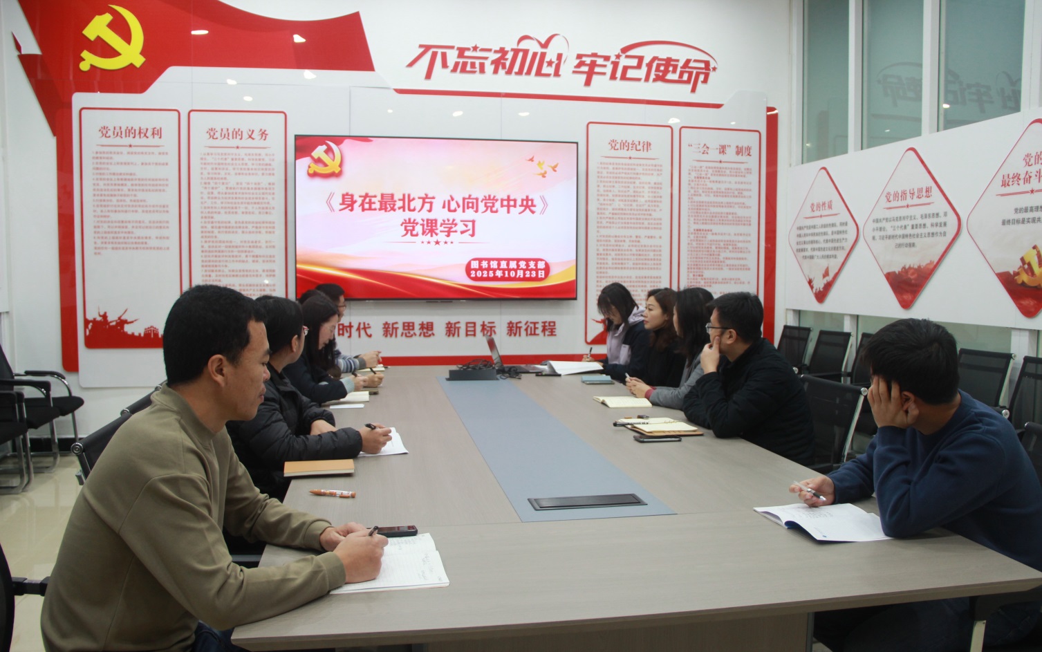 10月24日上午,图书馆直属党支部组织全体党员集中收看了由黑龙江省委组织部推出的“身在最北方 心向党中央”系列精品党课的首期《踏歌而行“声声”不息》。