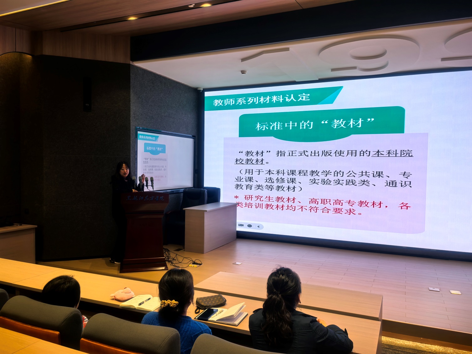 此次公益辅导不但对各系列职称评价标准中关于教材、著作、论文的要求做了详细解释与说明,对往年评职材料复核时教材、著作、论文等在材料提交与填写中出现的问题及填表规范给出参考建议,还为教师们讲解了辨别期刊是否合法的方法与正规图书期刊的查询途径。
