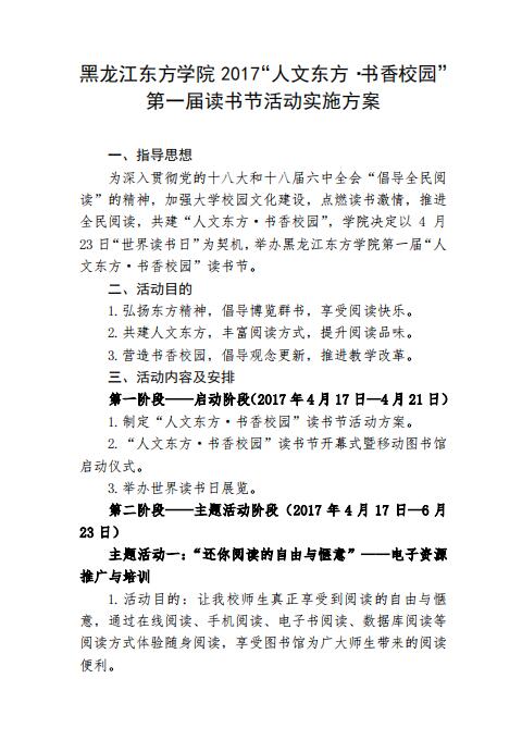关于印发《黑龙江东方学院2017“人文东方 书香校园” 第一届读书节活动实施方案》的通知.pdf