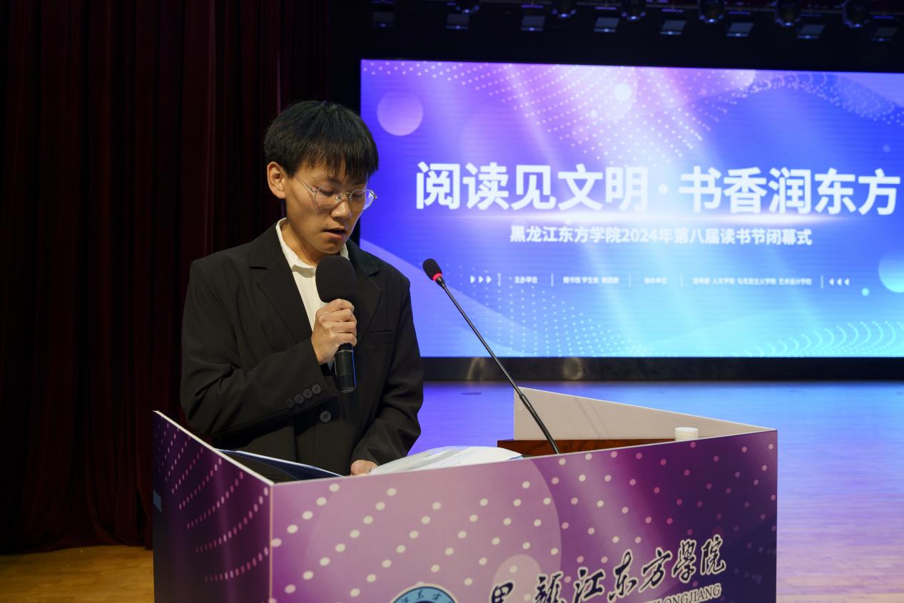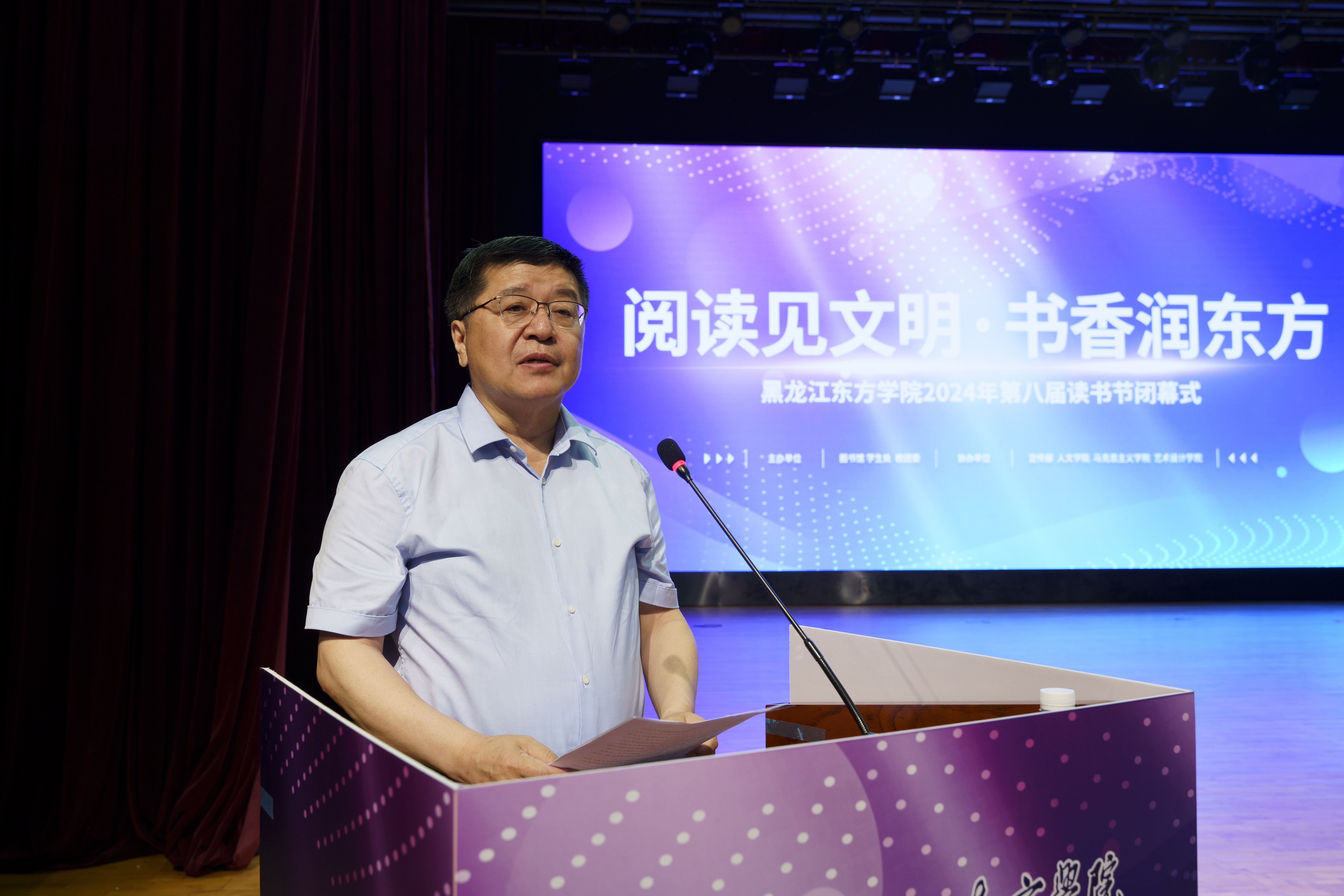 6月19日下午,我校2024年第八届读书节闭幕式在养正讲堂举行。学校副校长韩玉平,副校长程延江,黑龙江省工艺美术协会会长、汇丰照相器材集团董事长夏富祥出席,部分职能部门和学院负责人及近千名师生代表参加闭幕式。