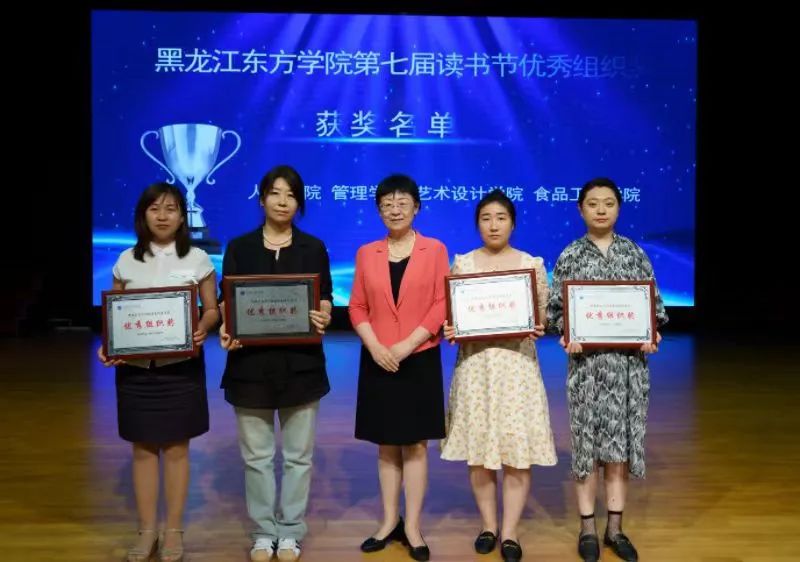 大会对各项活动进行颁奖并展示部分获奖作品。在本届读书节开展的活动——近五十所高校万余名师生参加的黑龙江省高校“‘青春筑梦 强国有我’学习宣传贯彻党的二十大精神主题知识竞赛”活动中,人文学院夏瑞雪老师获得唯一一个特等奖,学校图书馆获得优秀组织奖。