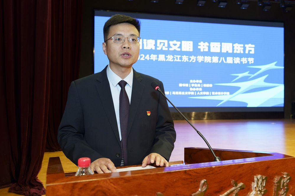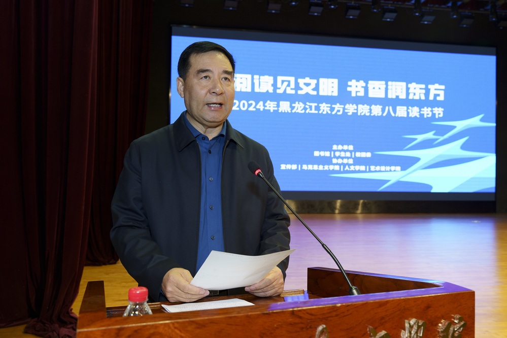 图书馆馆长郭健民宣读了《第八届读书节活动方案》。本届读书节分四大系列,共计十四项,活动形式多样、载体丰富。旨在激发广大师生的阅读兴趣,培养阅读习惯,营造浓厚的读书氛围,打造内涵丰富、特色鲜明的东方阅读文化品牌,让书香生活融入校园的每一个角落。