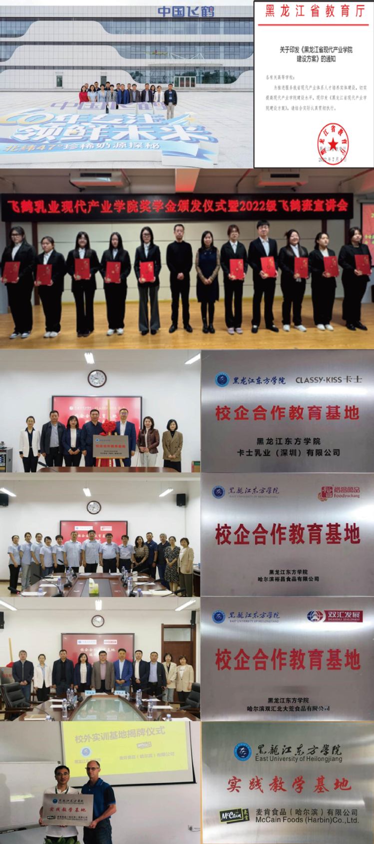 Focusing on meeting the talent demands of the food industry’s supply side and emphasizes deep integration between the University and industry, based on the establishment of university-enterprise cooperation bases. To this end, in 2021, East University of Heilongjiang and Feihe Dairy jointly established the “Feihe Dairy Modern Industry Academy.” In April 2022, the Feihe Dairy Modern Industry Academy was approved as one of the first batch of Modern Industry Academy construction points in Heilongjiang Province.
