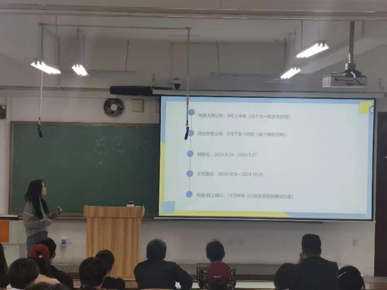 为了确保2025届毕业生能够充分了解考研信息,明确自己的目标和准备方向,并增强学生的考研动力和信心。旨在以优良学风为基石,推动高质量人才培养目标的实现。食品科学与工程系于2024年9月6日在第一教学楼281召开考研交流大会。