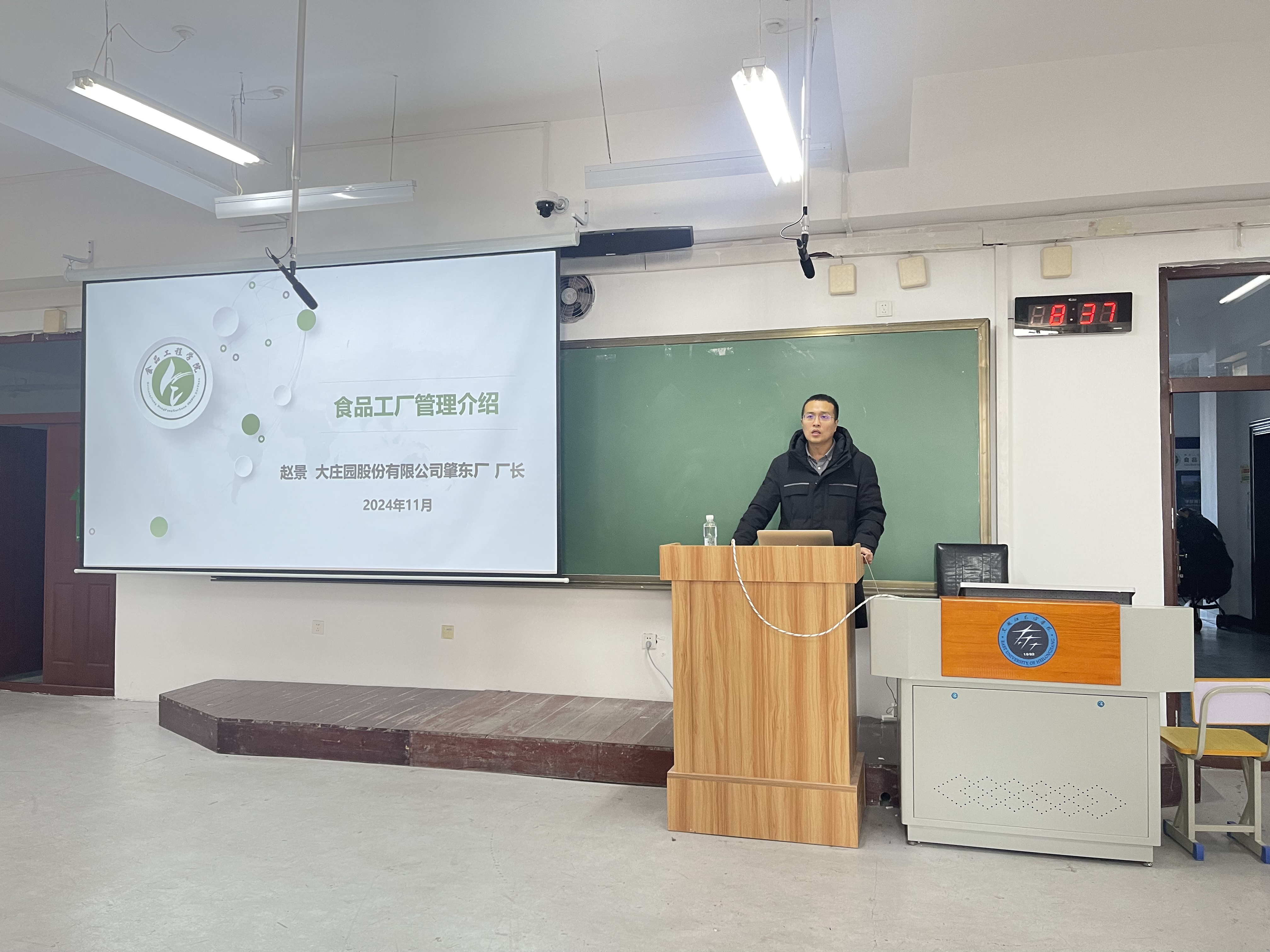 2024年11月24日,为增强学术交流,深入了解食品领域的前沿动态和最新进展,食品工程学院组织召开研究生《食品加工工艺进展及新产品开发》报告会,出席本次报告会的嘉宾有大庄园股份有限公司肇东厂厂长赵景,美团流程优化中台腾志丹,黑龙江立高科技股份有限公司河北燕大设计院院长魏鑫权,黑龙江立高科技股份有限公司销售总监张冰。报告会由食品工程学院2024级研究生辅导员尹欣老师主持,2024级全体研究生参与了此次报告分享会。