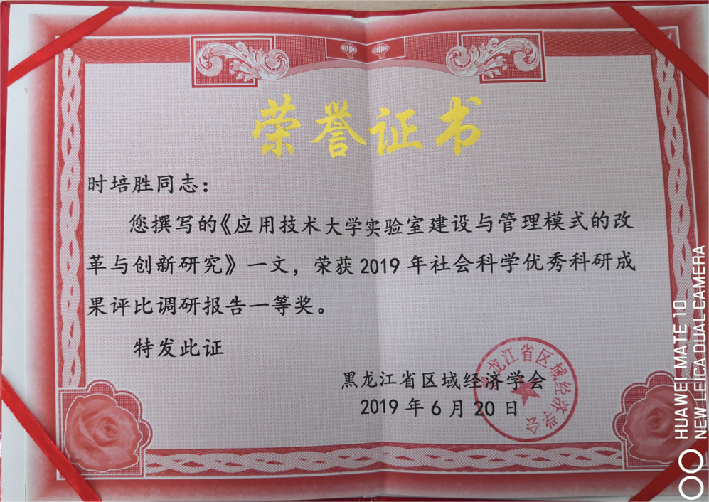 3、《应用技术大学实验室建设与管理模式的改革与创新研究》获2019年社会科学优秀科研成果评比调研报告一等奖