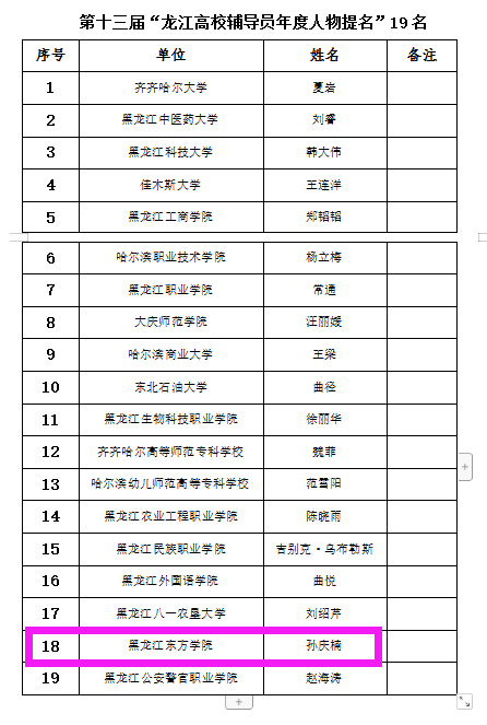 孙庆楠——第十三届龙江高校辅导员年度人物提名奖