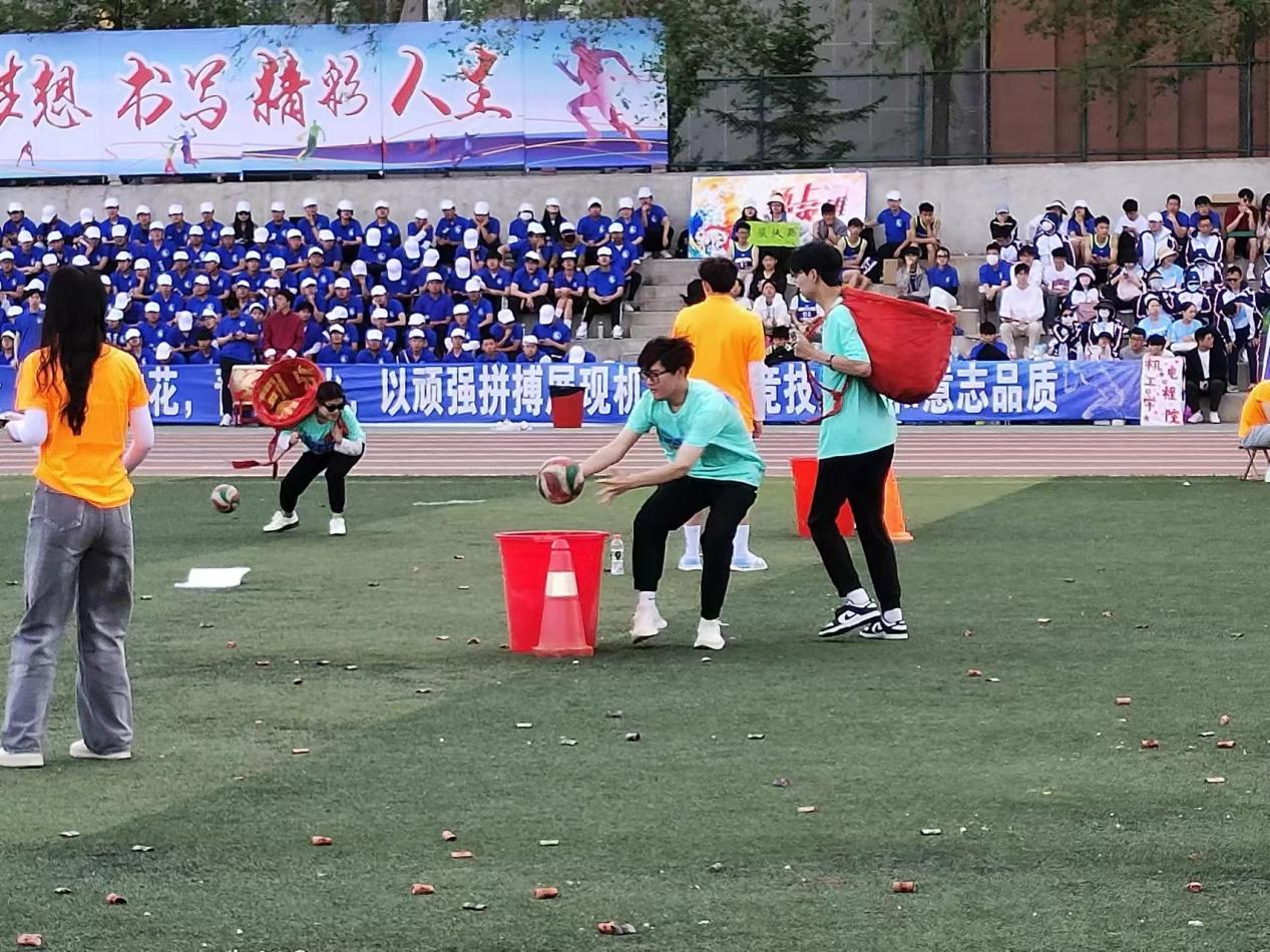 东方青年们在主持人和裁判的引导下进行了“抢丰收 、东方速递 、疯狂毛毛虫”等多种趣味运动项目,各支队伍齐心协力、团结协作,将青年团队的蓬勃朝气和团结力量展现得淋漓尽致。学校的教师和职工们也积极参加了“袋鼠跳”“一分钟跳绳”“实心球投准”“草地保龄球”“赶金猪”等趣味活动,他们团结协作,配合默契,展示了三尺讲台之外的另一番风采。