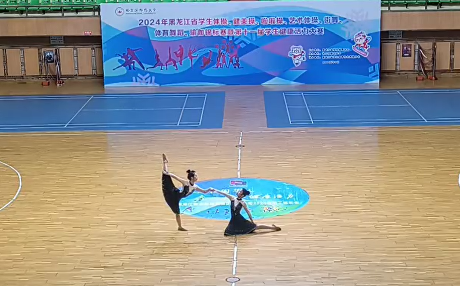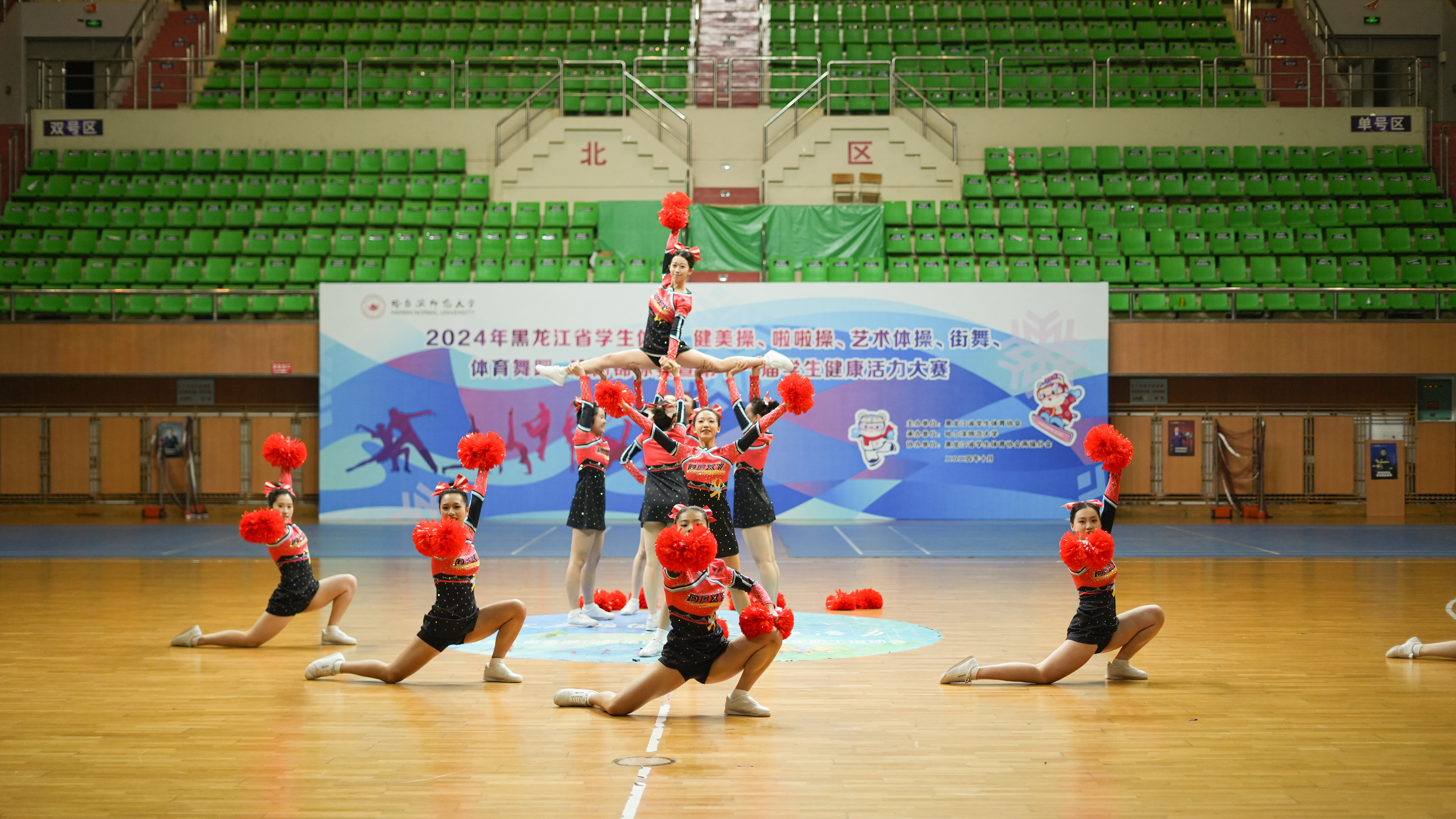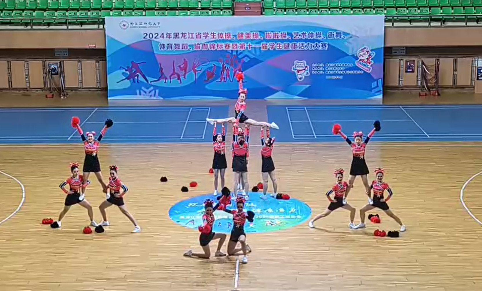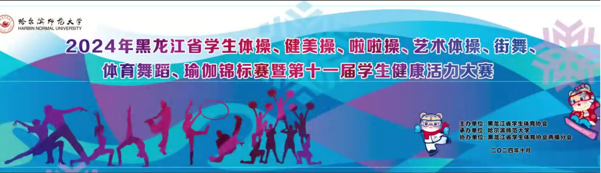 2024年10月12-13日,由黑龙江学生体育协会主办、哈尔滨师范大学承办的“2024黑龙江省两操系列锦标赛暨第十一届学生健康活力大赛”在哈尔滨师范大学江北校区盛大召开,我校体育军事教研部林然教授指导的健美操啦啦操队参加了本次比赛。赛会共设健美操、啦啦操、艺术体操、体操、体育舞蹈、街舞、瑜伽7个大项,近100个小项,1200余人参赛,是黑龙江省两操协会成立二十年以来规模最大的一届,我校29名运动员参加健美操、啦啦操9个项目的比赛。