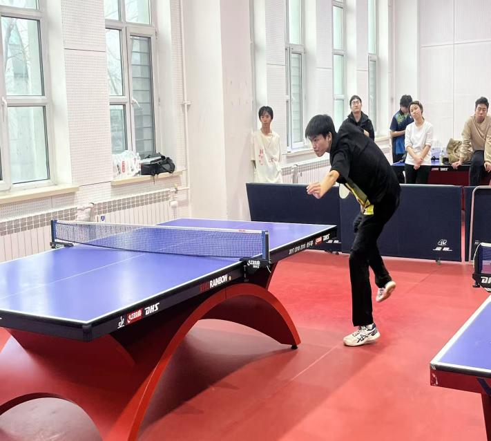 赛场上,每一位运动员都是绝对的主角。他们来自不同的学院、不同的年级,却因对乒乓的热爱汇聚于此,为了共同的目标全力以赴。在单打赛场上,选手们孤军奋战,凭借扎实的基本功、灵活的战术安排和超强的心理素质,与对手展开殊死较量。每一次发球都暗藏玄机,每一次接发球都谨慎应对,每一个回合的争夺都扣人心弦——时而网前轻挑,时而远台对拉,时而突然变线,每一个动作都展现着乒乓运动的灵动与精彩。