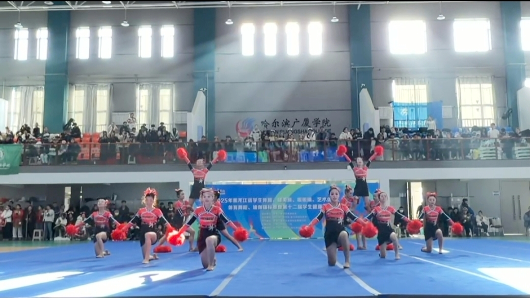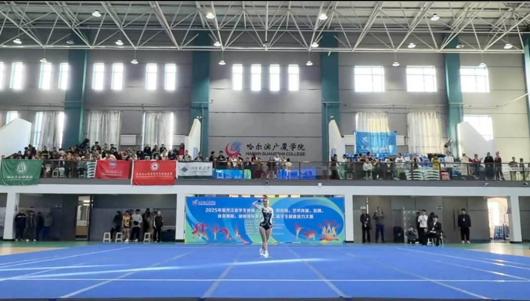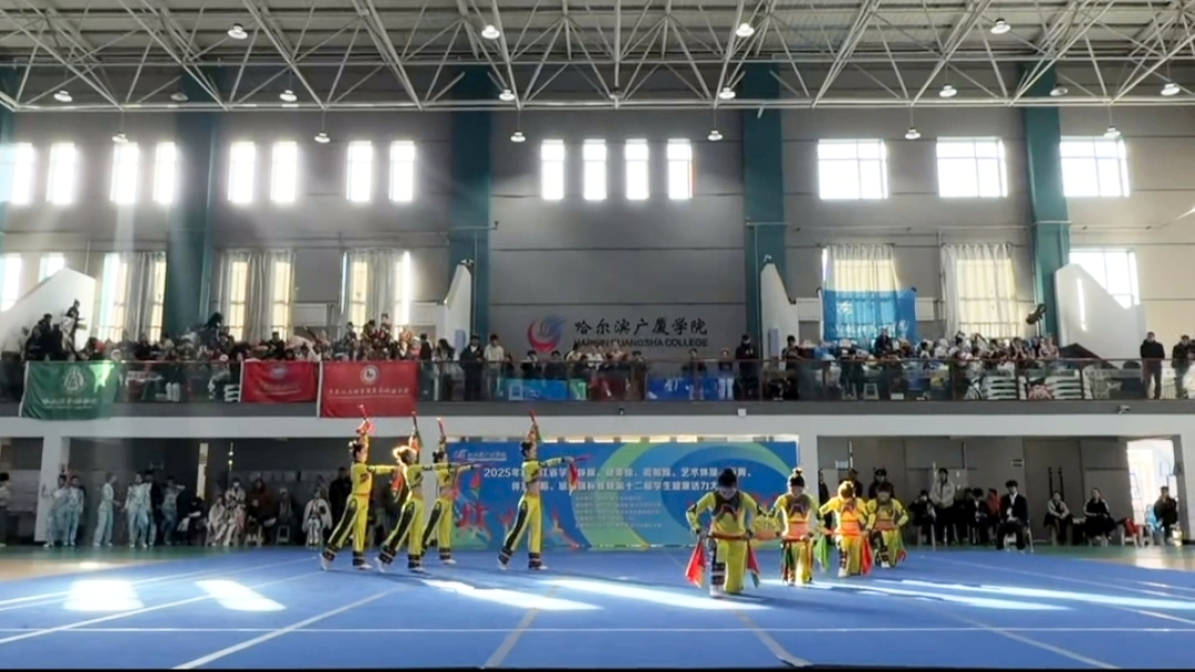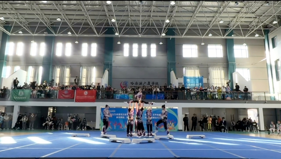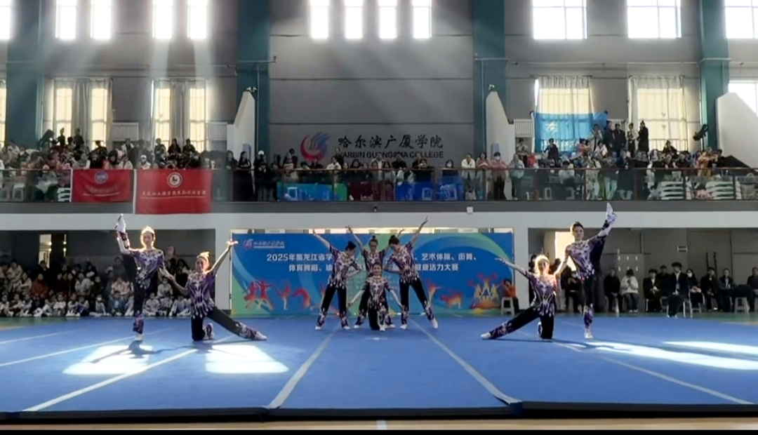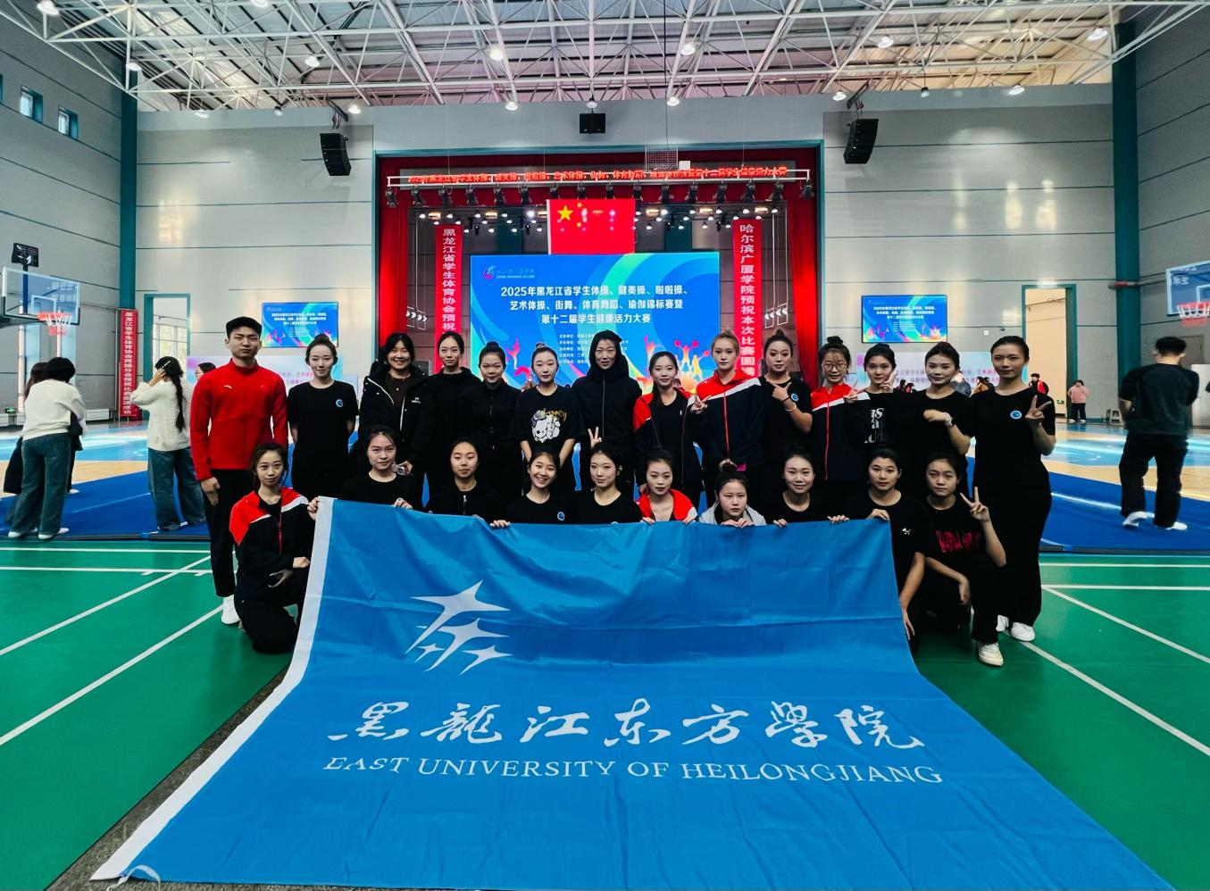 2025年11月9日,黑龙江省第十二届学生健康活力大赛在哈尔滨广厦学院艺体馆落下帷幕,黑龙江东方学院健美操队以昂扬的斗志、精湛的技艺和出色的表现,再次展现了东方学子的风采,成为赛场上一道靓丽的风景线! 体育军事教研部李征宇主任参加开幕式,并亲赴比赛现场指导,为运动员们加油。
