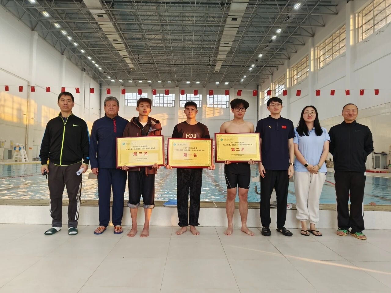 每一份荣誉的背后,都是泳手们日夜的训练与执着的坚守,让我们向所有参赛队伍致以最热烈的敬意!“以水为媒,泳见成长”游泳比赛的帷幕虽已落下,但青春的航程才刚刚扬帆。愿这份在碧波中淬炼的勇气、默契与奋勇争先的精神,能伴随所有新生在未来的大学时光里,无畏劈波斩浪,划出人生的每一段精彩轨迹!