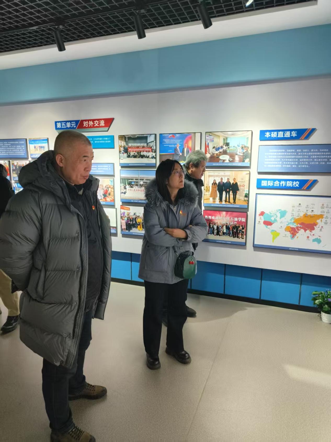 馆内陈列的一幅幅历史图片、一件件珍贵实物,生动再现了铁人王进喜同志艰苦奋斗、无私奉献的光辉一生。讲解员带领党员同志们重温铁人“宁肯少活二十年,拼命也要拿下大油田”的铮铮誓言,感受他“有条件要上,没有条件创造条件也要上”的奋斗精神。聆听讲解的过程中,党员同志们不时驻足凝视,深切体会到铁人精神蕴含的攻坚克难、勇于担当的时代价值。参观完铁人纪念馆,党员同志们移步校史馆。讲解员化身校史“领路人”,从学校的办学沿革、学科建设,到人才培养成果、校园文化积淀,用鲜活的故事和详实的数据,全方位展现了哈尔滨石油学院的发展历程与办学成就。