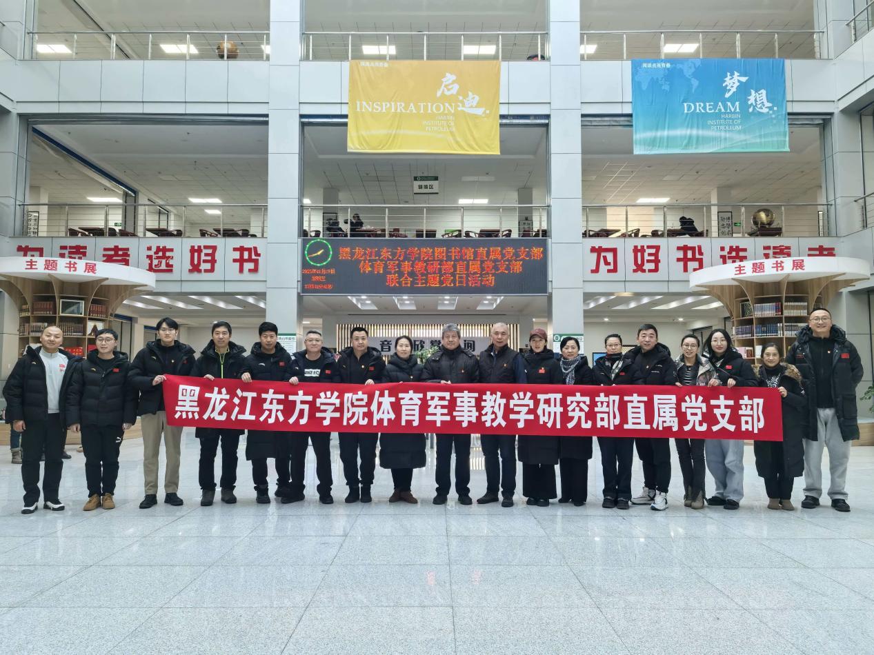 为深入学习铁人精神,传承红色基因,强化党员责任担当,2025年12月17日,体育军事教研部直属党支部与图书馆直属党支部的党员同志们齐聚哈尔滨石油学院铁人纪念馆,联合开展“追寻铁人足迹, 凝聚奋进力量”主题党日活动,一起感悟榜样力量,汲取奋进动能。