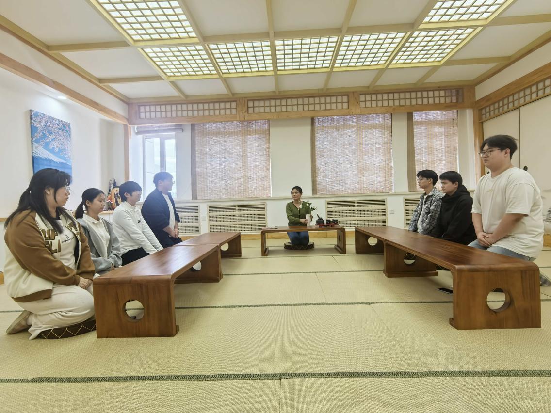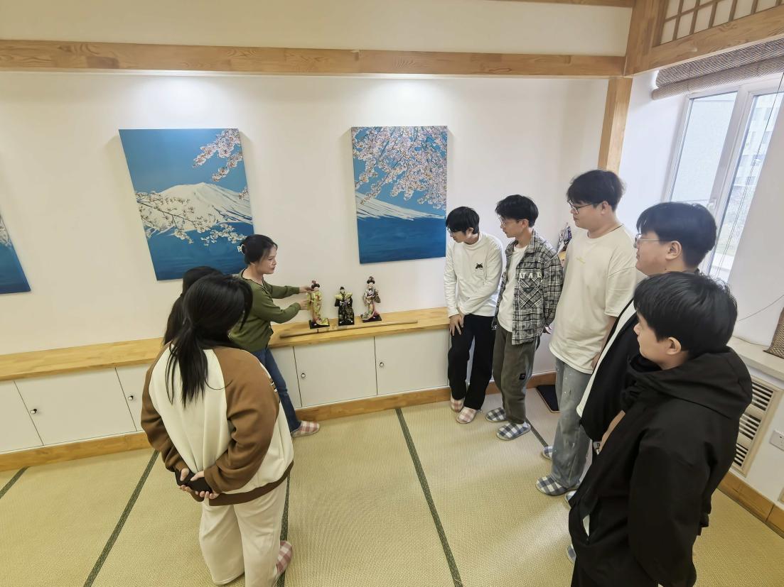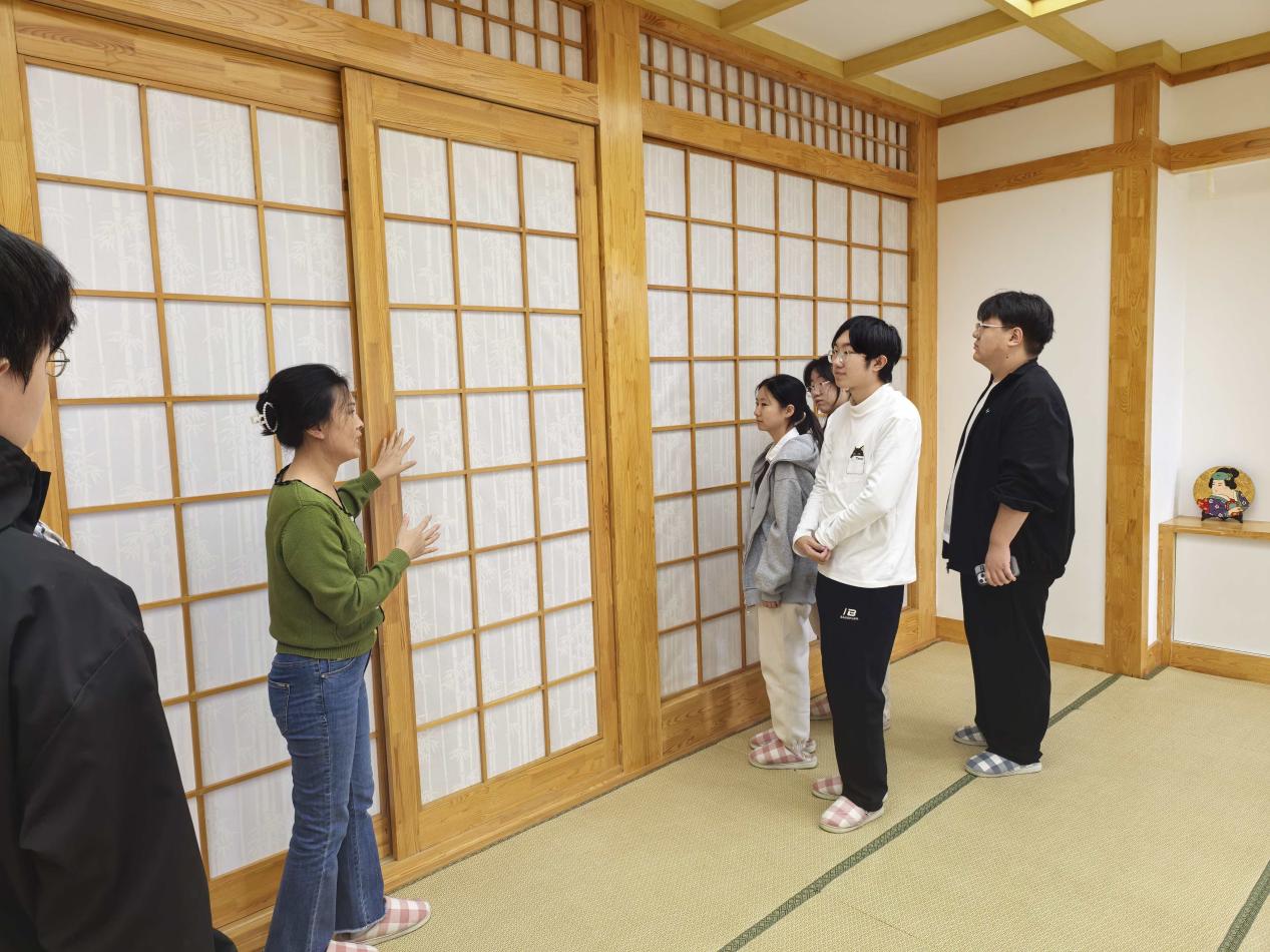 文化体验最后的角色扮演环节,同学们已经能够熟练地指认和室的各个部分,并用日语进行简单介绍。更重要的是,同学们充分理解了蕴含在和室中的日本美学——侘寂之美,其蕴含的无常、残缺与寂静的禅意,追求枯淡简素、与自然的浑然和谐以及待客之心。一位同学在体验后感慨道:“以前这些词汇只是课本上的符号,今天却能坐在真正的‘畳’上感受它们的气息和温度,这种体验令人难忘!”